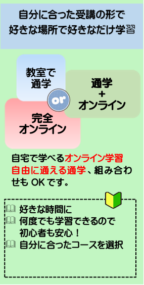 ご希望により、マンツーマン(業界最安)・オンライン講座のレッスンにも対応しています。